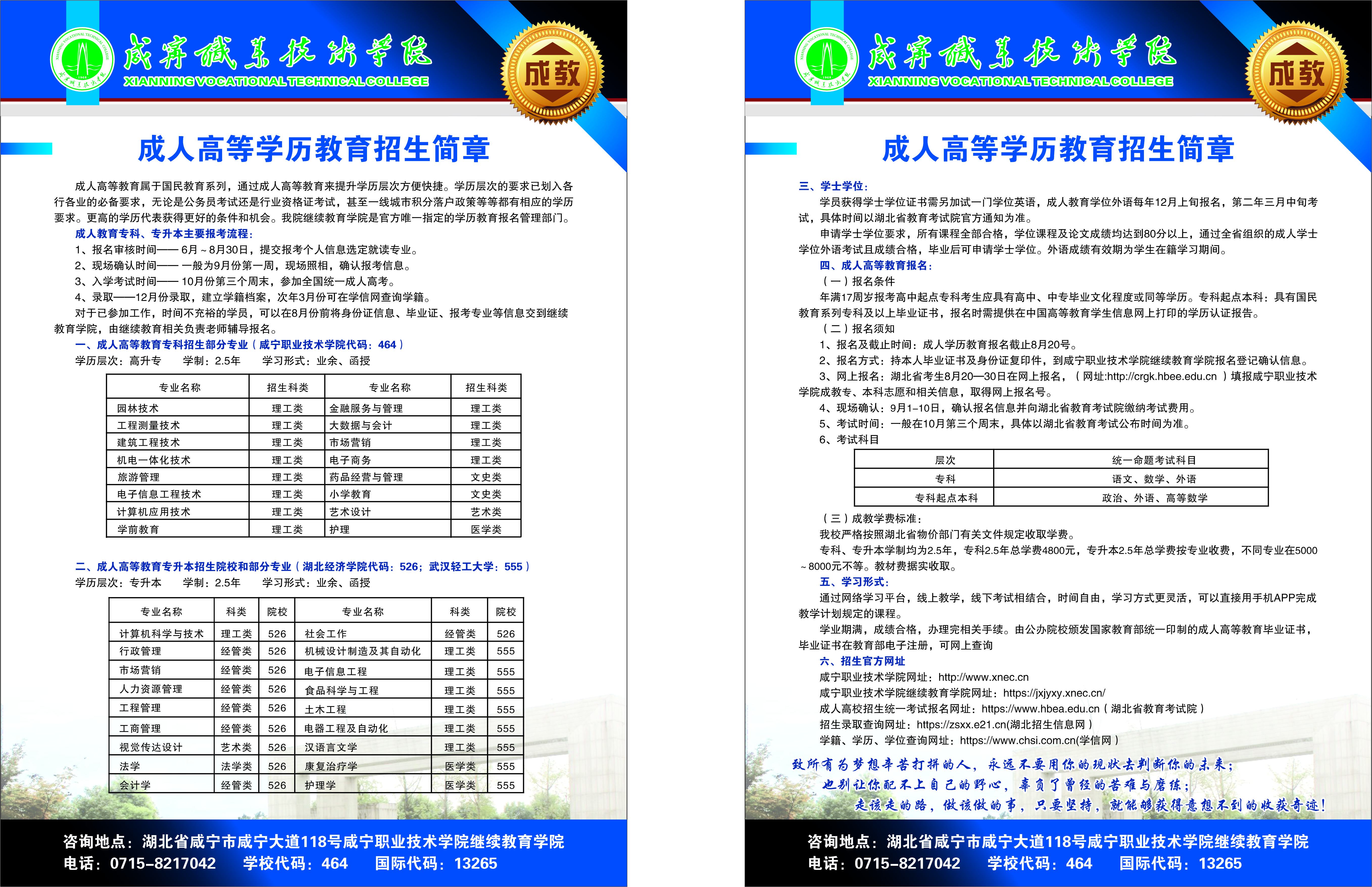 2025年咸宁职业技术学院成人高等教育招生简章