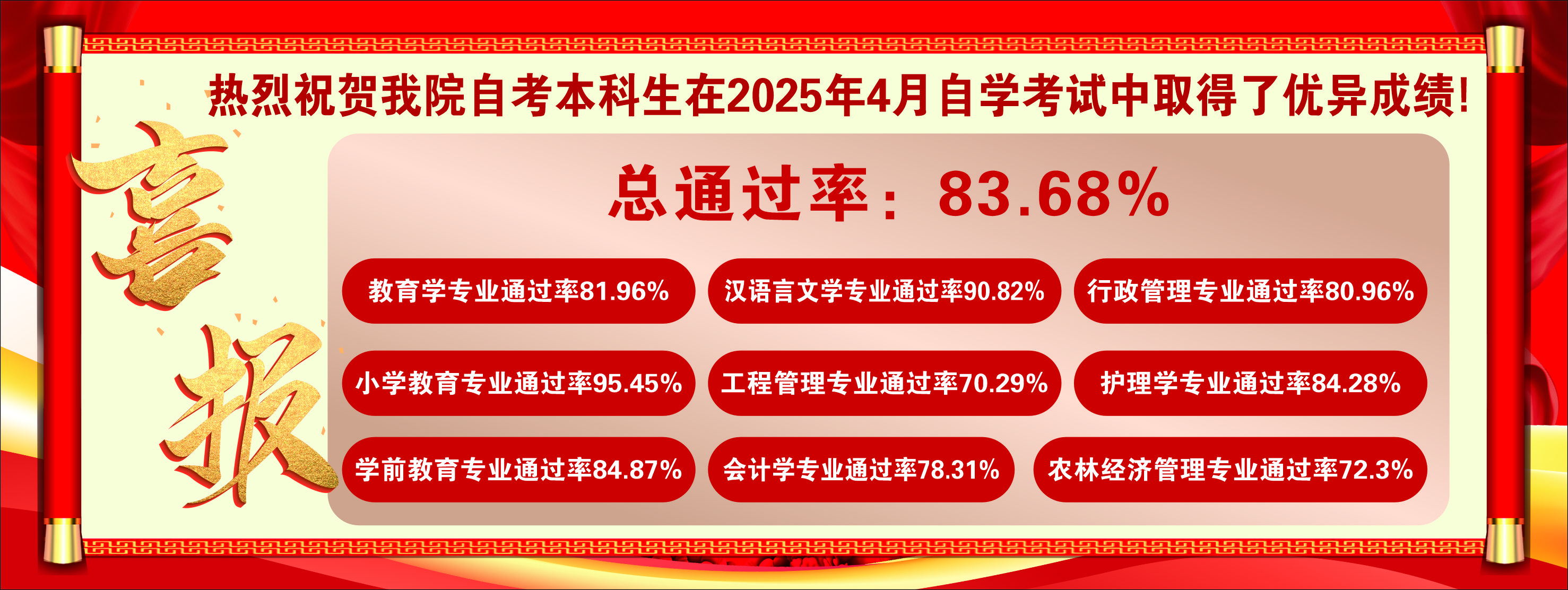 在2025年4月的自学考试中,我校自考本科班同学们再创佳绩,交出了一份令人骄傲的答卷!一直以来,继续教...