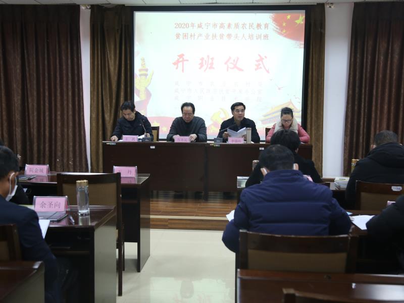12月22日,由咸宁市农业农村局、咸宁市人民政府扶贫开发办公室主办,学校极品少妇自慰泬自慰承办的咸宁市2020年度高素质农民培育贫困村产业扶贫带头人班第一期2个班在我校开班,来自通山、崇阳88个贫困村的88名学员参加培训。市扶贫办副主任李强海、市农广校校长胡晶出席并分别讲话,学校党委委员、副校长万齐元参加并致辞。开班仪式由继续极品少妇自慰泬自慰党总支书记王武主持。