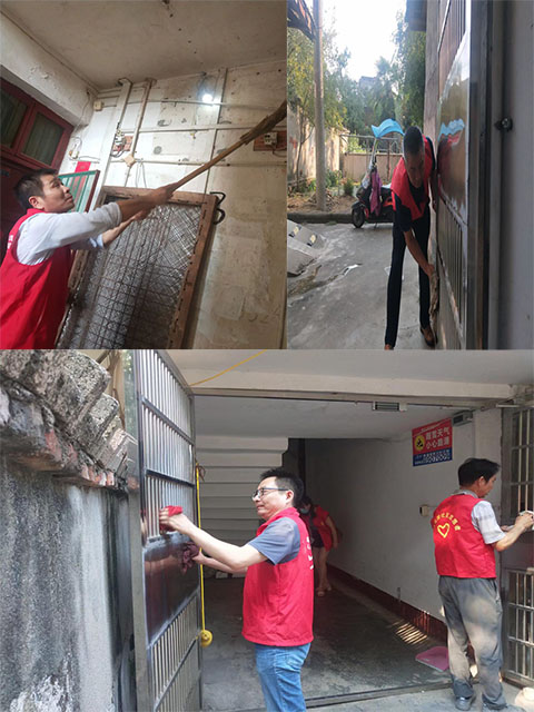 志愿者们身着“红马夹”,手持劳动工具,深入小区楼道、绿化带、主干道等清洁区进行“刷”、“铲”、“夹”、“擦”、“洗”、“扫”,对小区楼道里的“小广告”和“牛皮癣”进行了铲除,对墙壁上、防盗门上的蜘蛛网、灰尘进行了刷洗,对残留在绿化带里的小区主干道上的白色垃圾、烟头、果皮、塑料袋等地表垃圾不留一处死角进行了及时清理。大家干得热火朝天,汗流浃背,经过共同辛苦努力,小区里的环境卫生焕然一新。